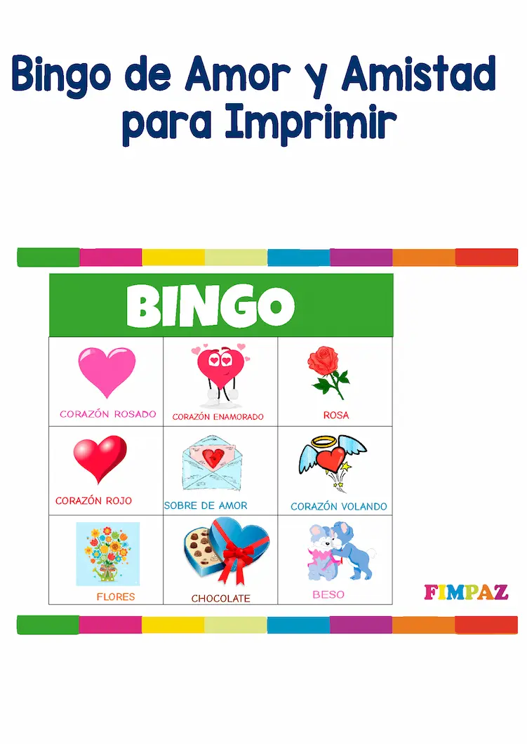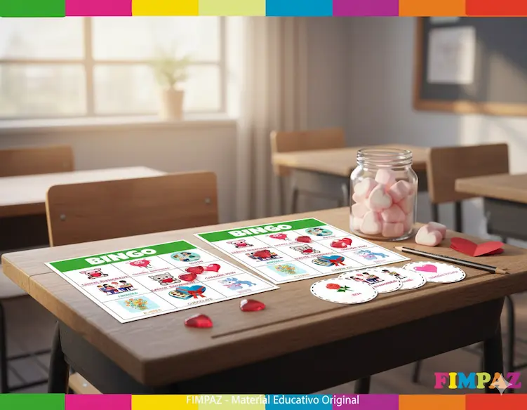En FIMPAZ, hemos diseñado este bingo pensando especialmente en los niveles de preescolar y primaria, con imágenes claras, coloridas y muy atractivas.