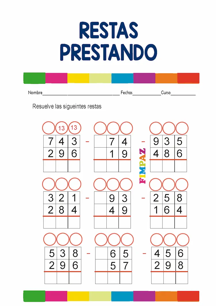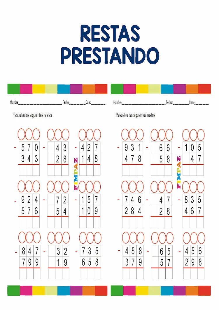 Las restas prestando, también conocidas como restas con llevadas o restas con reagrupación, son un paso fundamental en el aprendizaje de las matemáticas en primaria. Si tus hijos o estudiantes de segundo o tercer grado están listos para resolver operaciones más complejas, este recurso gratuito de Fimpaz es para ti.