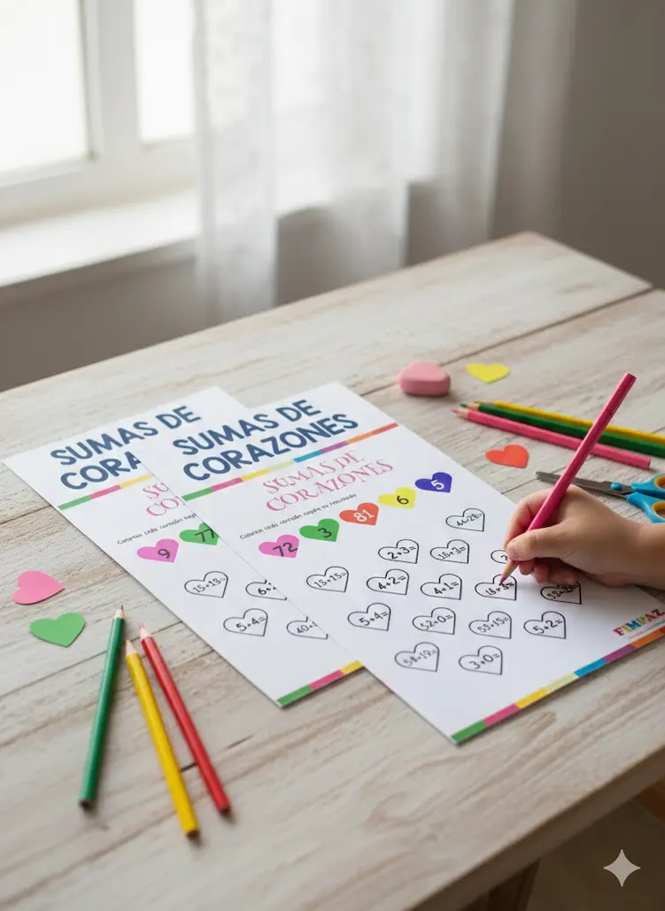 A continuación podrás adquirir nuestro PDF de Sumas de Corazones totalmente gratis con solo un clic. Este recurso ha sido creado por FIMPAZ para hacer del aprendizaje una experiencia divertida y llena de amor.