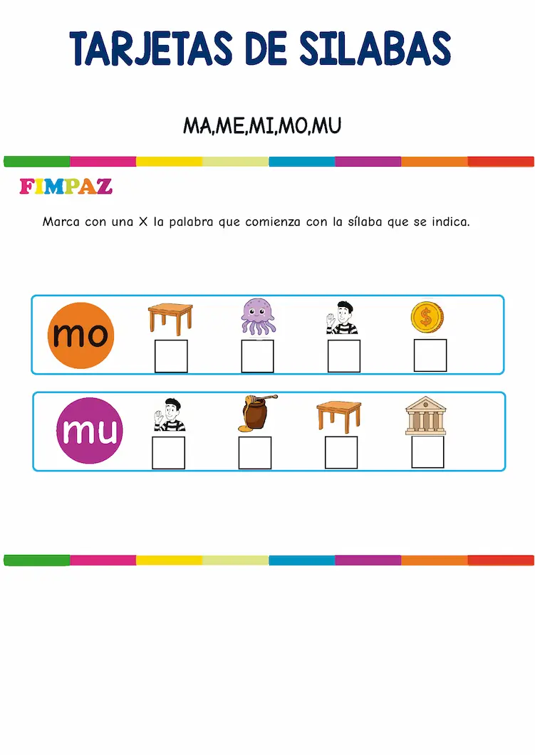 - Descarga el PDF de Sílabas ma, me, mi, mo, mu